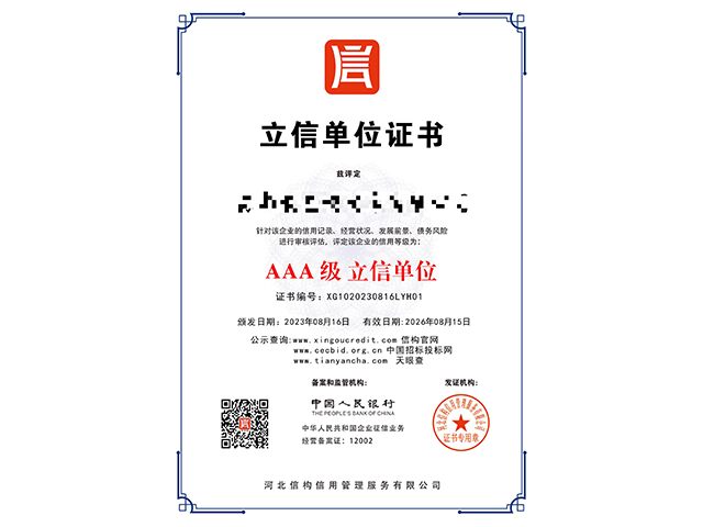 AAA級立信單位認證是對企業信用狀況的高度認可,表明該企業具有極高的信用度和良好的還···